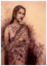 SUHAS ROY: He studied at the Indian College of Arts and Draftsmanship,Calcutta, and under the tutelage of Prof. S.W. Hayter at the Atelier 17 Ecole Superior Des Beaux Arts, Paris. His works have been exhibited allover the world through exhibitions like the Asian Graphic Prints Traveling Exhibition, USA, the Tokyo Print Biennale, Japan, Contemporary Indian Art,Yugoslavia, Romania, Czechoslovakia, Hungry, and Wounds, at the Central Institute Modern Art, New Delhi, and the National Gallery of Modern Art, New Delhi. Roy lives and works in Santiniketan where he is the head of the Department of Painting at Kala Bhavan, Santiniketan. His craftsmanship and consummate skill that ensure that his richly romantic subjects do not touch extreme syrupy and stereotypical portrayals. Instead, their very patent beauty veers towards melancholic grace and elegance. This graceful portrayal of his subjects has much to do with his choice of refinement. The mystical flavour of his works arose from his materials - his crayons, charcoal and brush have sensitivity and interpretations of the 'unknown'. |